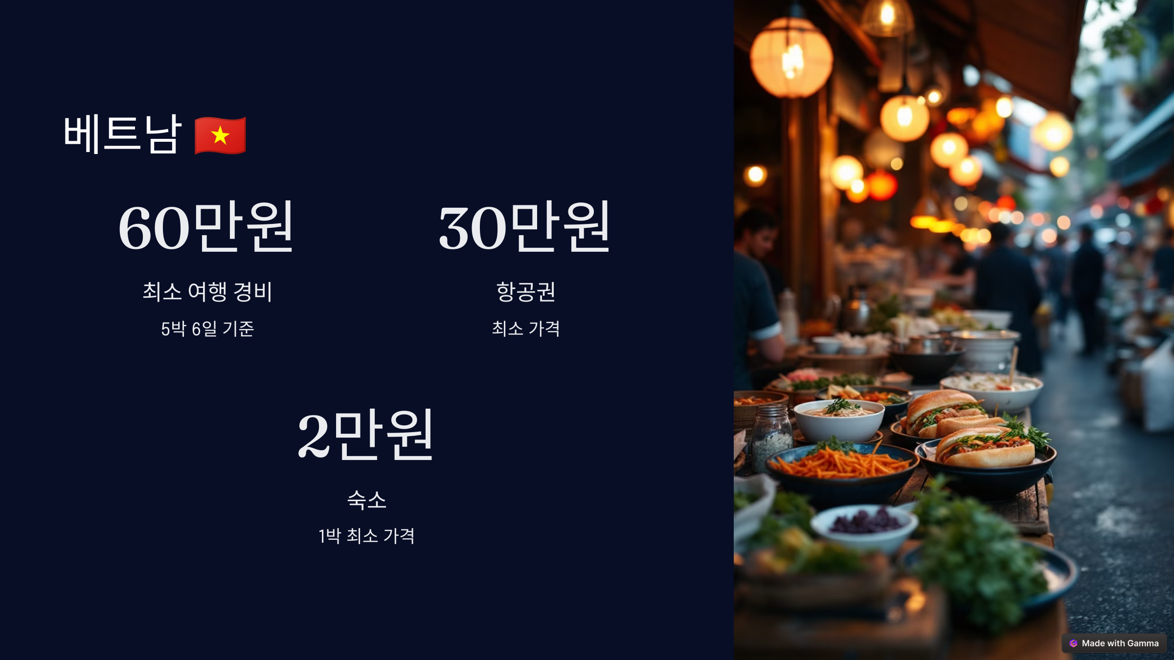 - 평균 여행 경비(5박 6일): 약 60만~100만 원